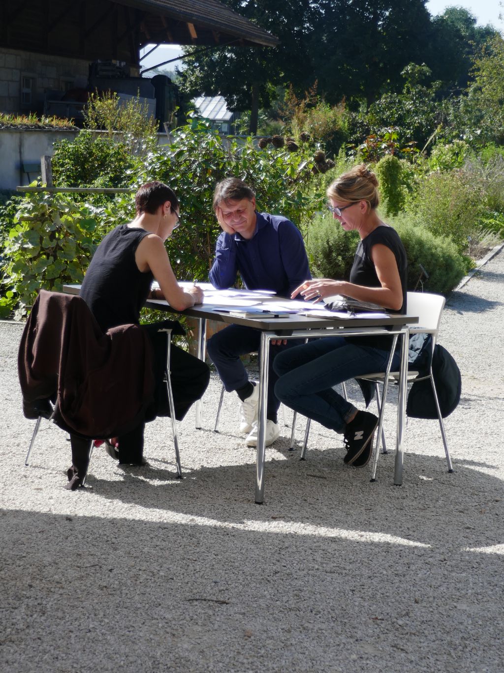 Morgentau auf Blütenblättern, ein leuchtender Spätsommertag. Die Stadtgeschichte findet ausnahmsweise an diesem wunderbaren Ort zusammen – fernab von Verkehr und Büroatmosphäre. Wir treffen uns, um den Stand der Arbeiten zu diskutieren. Denn Forschung ist zwar oft eine einsame Angelegenheit, doch gerade in unserem Projekt besteht die seltene Möglichkeit, in ungewohnten Konstellationen zu diskutieren und aufeinander einzuwirken.